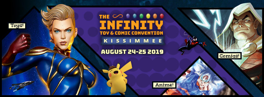 The Infinity Toy and Comic Con is a Veteran owned and family run comic book convention located in Orlando, Florida. There are three rooms and well over 7,000 square feet of vendor space with a wide range of products from some of today’s hottest publishers and manufacturers.